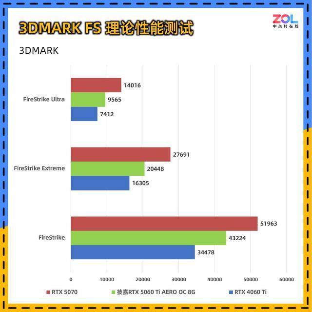 咱们使用3DMARK系列软件对技嘉RTX5060 Ti AERO OC 8G显卡进行表面性能测试,涵盖DX11、DX12、光追及AI加快等多个维度,同期与RTX 4060 Ti、RTX 5070进行对比,直不雅展现其性能定位。