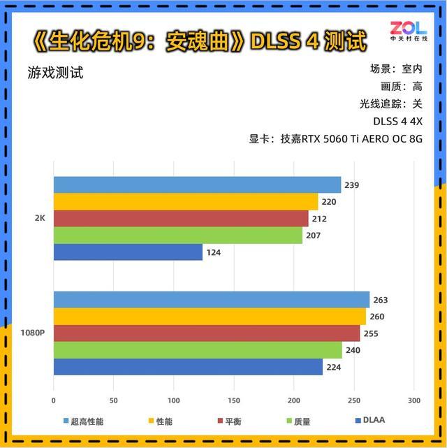 在关于建树条款相对较低的二游中,技嘉RTX 5060 Ti AERO OC 8G显卡进展更为出色,在DLAA原陌生辨率下,2K分辨率仍是拿下281帧的成绩,天然由于显存为止,4K分辨率着落至50帧,然而DLSS的牢固阐扬让帧数跃升至200帧以上。