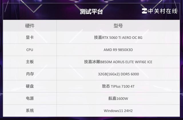 先容一下测试平台,为了保险技嘉RTX 5060 Ti AERO OC 8G显卡的性能阐扬,咱们使用了AMD R9 9850X3D搭配技嘉冰雕B850M AORUS ELITE WIFI6EICE主板。