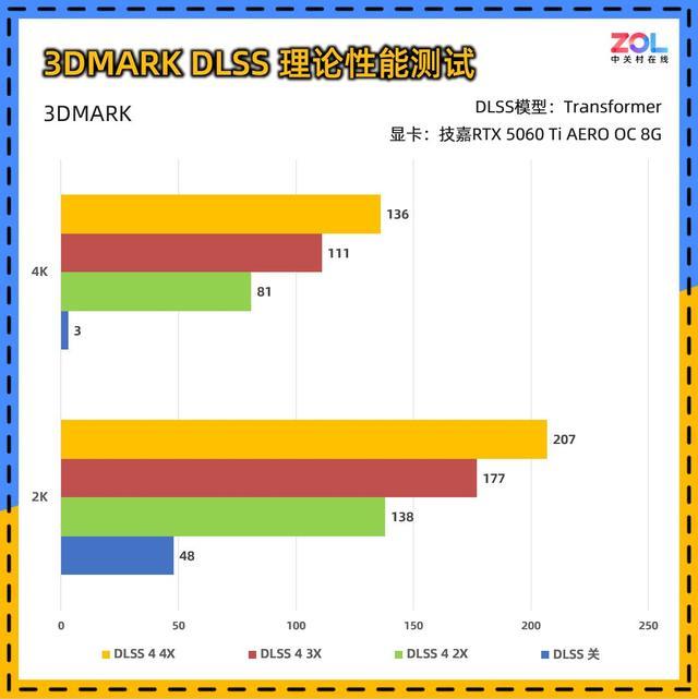 在《赛博一又克2077》中,DLSS 4的测试为Transformer模子4X帧生成形状,超分档位均遴荐质地。