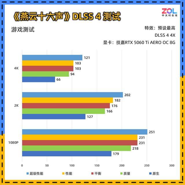 武侠游戏《燕云十六声》这里,技嘉RTX 5060 Ti AERO OC 8G显卡一样进展可以,2K分辨率下原生画质仍是拿到127帧的成绩,开启DLSS超等性能更是可以达到202帧,况且在4K分辨率下超等性能一样能拿到121帧的好成绩。