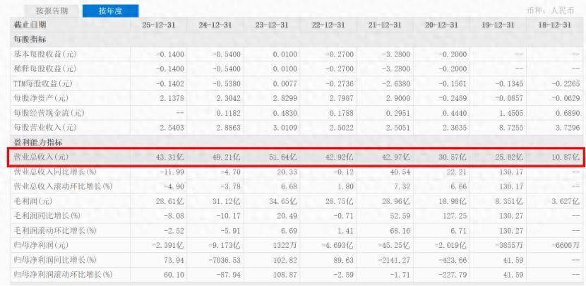 财报数据披露,2021年上市当年,奈雪的茶终了营收42.97亿元;2022年营收微降至42.92亿元;2023年营收速即攀升至51.64亿元,创下上市以来营收最高记录;2024年营收回落至49.21亿元;2025年,公司终了总营收43.31亿元,较2024年同比下滑11.99%,较2023年的峰值水平减少16.13%。