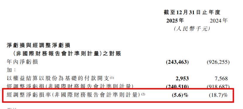 2024年公司全年净耗费9.26亿元,2025年经休养净耗费从2024年的9.19亿元收窄至2.41亿元,耗费同比减少73.8%,经休养净耗费率从2024年的-18.7%收窄至-5.6%。