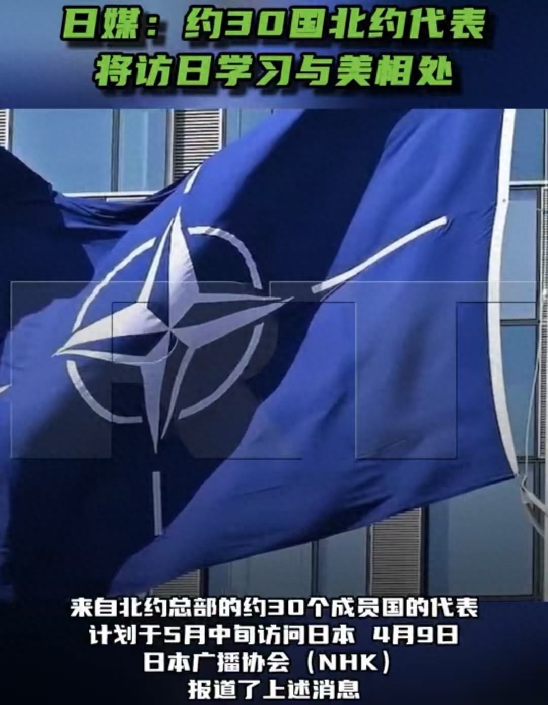据日本播送协会(NHK)4月份最新音尘,北约30个成员国驻布鲁塞尔总部的大使级代表,将于2026年5月中旬拜访日本,这是北约历史上界限最大的赴日代表团。