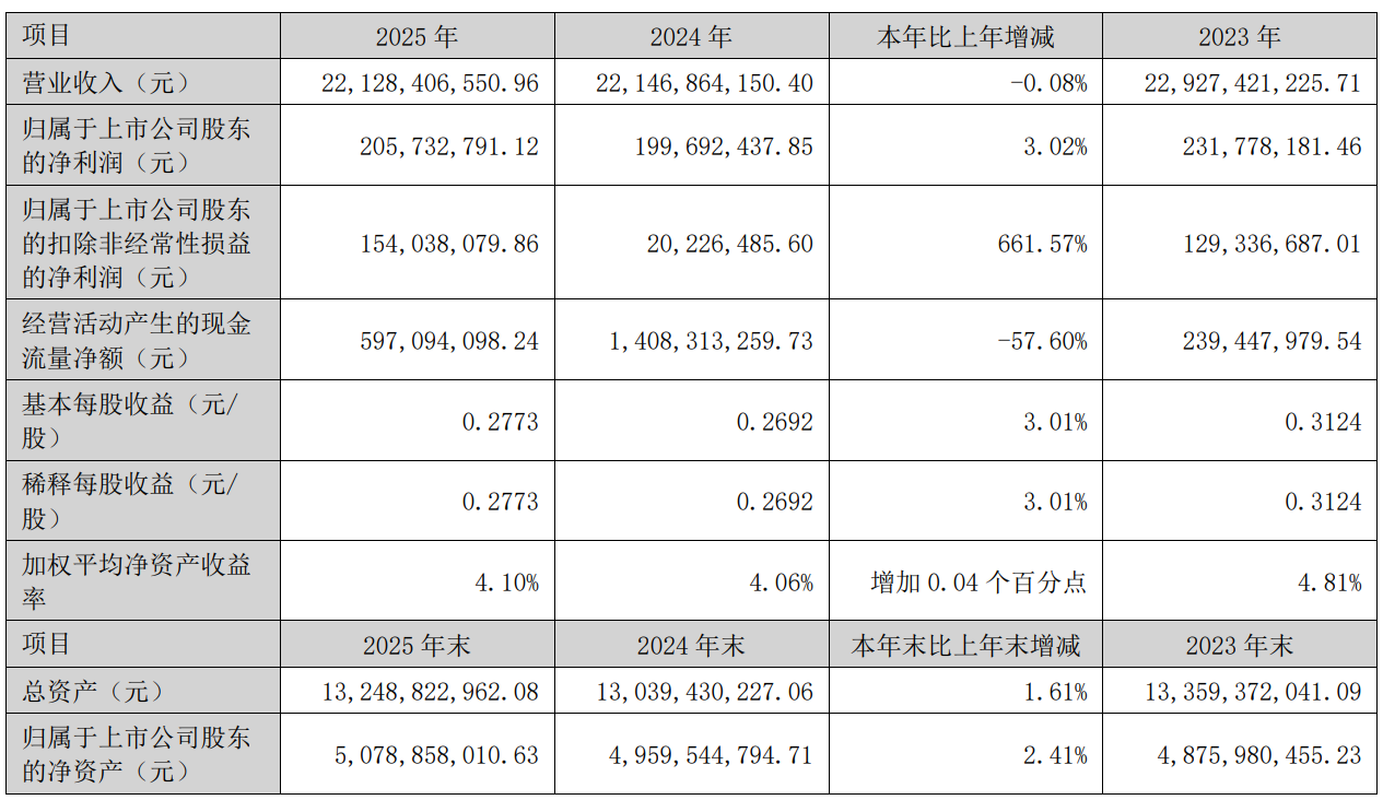 中证智能财讯厦门港务(000905)3月14日败露2025年年度申报。2025年,公司竣事贸易总收入221.28亿元,同比下落0.08%;归母净利润2.06亿元,同比增长3.02%;扣非净利润1.54亿元,同比增长661.57%;蓄意行径产生的现款流量净额为5.97亿元,同比下落57.60%;申报期内,厦门港务基本每股收益为0.2773元,加权平均净钞票收益率为4.10%。